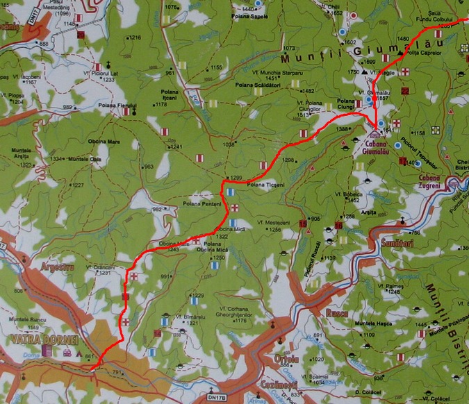 In primul rand traseul este lung! Practic noi am parcurs, de la est la vest, culmile Raraului (pornind din marginea estica a acestui munte si nu din zona centrala -cea facila!) , Giumalaului (cu trecerea peste varf si nu ocolirea acestuia) si, deloc de neglijat, culmile Obicinei Mici si Obcinei Mari pana la Vatra Dornei. De regula la Cabana Giumalau mare majoritate vine si coboara dinspre Valea Bistritei, unde se poate ajunge cu masina… Noi am mers integral numai pe culmi, de la Campulung Moldovenesc pana la Vatra Dornei.