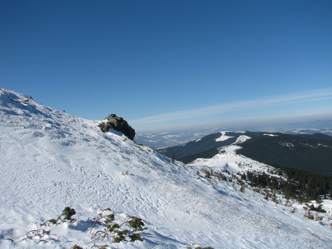 Traseul l-am parcurs iarna , cu zapada. Si iarna nu-i ca vara ! 😉 Am inotat efectiv prin nameti la urcusul pe Vf Giumalau… Si am mai avut si alte portiuni de munca la nameti!…