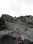 Regrupam si urcam, urcam si regrupam, lungime dupa lungime, pasajele fiind catarate la liber, mai punand din loc in loc cate un anneau.