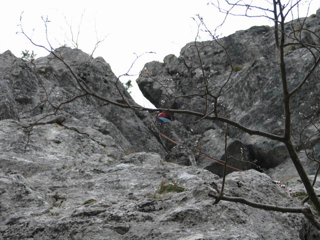 Regrupam si urcam, urcam si regrupam, lungime dupa lungime, pasajele fiind catarate la liber, mai punand din loc in loc cate un anneau.