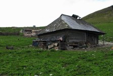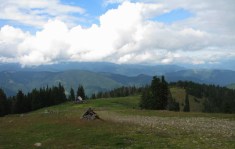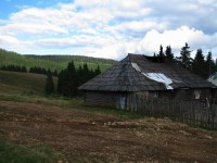 In stana din Curmatura Oltetului ne trezim la ora 5:00 dimineata, inainte de a se scula ciobanii. Tabieturile de dimineata: ceaiul / cafeaua (la primus), mancare, apoi rucksacii de strans. Bacita ne ofera (gratis) doua bucati mari de urda si branza plus cateva rosii. Cred ca erau vreo 10 kg numai de branza! I-am explicat ca noi ducem totul cu spatele si avem mult de mers, asa ca am taiat o bucatica de urda si una de branza si am luat vreo 4 rosii. Oricum, ne incarcasem suplimentar cu vreo 4 kg, ceea ce conteaza… Ne-am luat ramas bun de la acesti ospitalieri ciobani din Nordul Olteniei, pornind in traseu.
