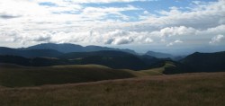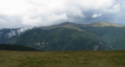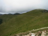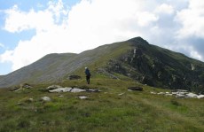 Asadar, debarcam in Malaia, iar la indicatiile unor oameni sfatosi ai locului, incepem sa urcam pe poteca spre Stanele Zmeuretu.  Urcusul e destul de abrupt, in serpentine si destul de obositor, mai ales ca noi ne-am reumplut rucksacii cu mancare si cele necesare continuarii Traversarii Meridionalilor. Peisajul e cuprinzator, vedem Muntii Latoritei, Lotrului, totul de un verde crud, peste care se inalta albastrul cerului. Continuam sa urcam, prin padure, pe alocuri trebuind sa trecem peste arbori culcati la pamant. Dupa cateva ore, padurea se mai rareste, iar linistea e tulburata de latratul unor caini. E clar, stana e pe-aproape! Iesim in gol, in vecinatatea stanei Zmeuretu. Bacita (cu baiatul ei) e de treaba, are chef de vorba. La stana mai au ajuns niste baieti ce au cumparat branza; cand le-am spus de-unde venim si incotro mergem, i-am pus pe ganduri… Bacita ne-a asigurat ca nu vom avea probleme cu cainii si ca oricum ne vom intalni cu tatal ei cu oile. In culme se asternuse o oarece ceata. Am luat-o la picior, fiindca aveam de mers. Mergand prin padure, iesim in Curmatura Zanoaga, apoi in Curmatura Rodeanu. Vizibilitatea redevenise buna! Pe parcurs ne-am intalnit cu tatal bacitei, cu care am schimbat cateva vorbe. Poteca e larga in aceasta zona a Culmii Principale a Capatanii. Pe un copac am gasit un marcaj banda rosie, nestiind ca era cam singular… Continuam sa mergem indreptandu-ne spre Curmatura Valeanu. In fata se desfasoara varfurile masivului Capatanii.  Orele se scurg si incepem sa ne gandim unde vom inopta, precum haiducii de odinioara. In stanga, la liziera padurii se vad mai multe stane. Coboram la una dintre acestea, in interiorul careia instalam cortul. Gasim si apa in apropiere, mancam, apoi, incet-incet, mantia noptii ne invaluie intr-un somn odihnitor.