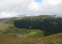 Carpatii Meridionali, cei mai inalti munti din Romania. Toate varfurile de 2500m se gasesc in acest lant muntos. Varfuri stancoase, creste semete, lacuri glaciare, intinderi de pasuni, paduri… Privesc harta tarii: pe Valea Prahovei, la poalele Bucegilor este Sinaia –perla Carpatilor, statiune de munte traditionala a tuturor romanilor ; apoi, catre vest, la baza Muntilor Cernei sunt Baile Herculane –renumita statiune cu ale sale ape vindecatoare ce erau cunoscute inca de pe vremea romanilor. Din preajma oraselor respective se desfasoara o suita lunga de creste si culmi, lantul Carpatilor Meridionali.