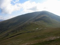 Din Curmatura Oltetului  urcusul este destul de abrupt la intrarea in Masivul Parang. Panta Varfului Micaia si rucksacii nostrii grei ne cam pun pe pufait… Pe masura ce urcam, admiram peisajele din jur, respectiv Muntii Latoritei si Lotrului,  in spate Muntii Capatanii,  in sus momaia de pietre de pe Vf Pristosul  (premergator Vf Micaia). Cum noua ne-a placut matematica, urcam matematic catre varf. Asa, pas cu pas, ajungem pe Pristosul,  dar vedem ca mai avem ceva de urcat pana pe Micaia. Continuam sa urcam si dupa un timp ajungem pe largul Vf Micaia. Bate un vant rece din dreapta (N)! In zare vedem stancariile Parangului de Vest (cel mult mai cunoscut de turisti), ce par a fi acoperite cu zapada (datorita culorii albe a stancilor). E departe, mai e mult de mers! Incepem sa coboram de pe Vf Micaia, zarind in vale cativa stalpi de marcaj. E bine! Chiar daca avem mult de mers, macar vom fi ghidati ca-lumea! In fata-stanga, observam asezarea Ranca. In timp ce coboram, vantul il resimtim tot mai rece. Ne mai imbracam cu cate ceva, fiind pregatit sa-mi pun si manusile. Si suntem in august !… Ajungem intr-o sa cu lac (Saua Balescu), unde ar fi loc bun de cort, daca nu ar batea vantul. Continuam sa mergem, abordand un urcus. Din sens contrar vedem o haita de turisti, care, cand am trecut pe langa ei, ne-am dat seama ca sunt ceho-slovaci. Numai astia umbla cu turma! Continuam sa urcam, iesind in Saua Galbenul. Aici e mai cald, nu mai bate vantul, asa ca ne dezbracam (nu de tot!).  Urcam mai departe pana pe Vf Galbenul. Privesc spre stancariile Parangului vestic. Parca ne-am mai apropiat! Mergem pe poteca in vecinatatea Vf Papusa,   zarind serpentinele soselei Transalpina (cel mai inalt drum national din Romania). Noi tot mergem inainte. Dupa o vreme coboram pe sosea in Saua Dengherul. Asfaltul e exact ce ne trebuia la mersul nostru in bocanci!… Cei din masini se uita curiosi la cei doi MAC-i cu rucksacii lor mari ce-i duceau in spate. Noi continuam sa mergem, pana ce un nene binevoitor ne duce cu jeep-ul dincolo de Pasul Urdele. Coboram abrupt de la nivelul soselei, ca mai apoi sa urcam pieptis pe Vf Iezerul.  Ne oprim pentru pauza de masa, admirand Mohorul. Mancam din plin urda si branza cu rosii, pomenind-o pe bacita! Urda dincolo de Urdele! Dupa „festin” continuam sa mergem, coborand intr-o sa,  angajandu-ne apoi in urcusul pe Mohorul. Depasim niste turisti ce veneau din sosea, care apoi i-am lasat in urma tot mai mult (desi noi pornisem mult mai de departe!). Mohorul e obositor, dar pana la urma iesim pe curba de nivel,  lasand varful in spate.  Zaresc doua turme de oi,  dar aici masivul e mai umblat si nu avem probleme la trecerea printre mioare si caini. Poteca o ia la dreapta, pe sub Vf Plescoaia, urcand spre Vf Setea Mare.  Trecem de ramificatia spre Lacul Calcescu  (de unde mai veneau turisti), continuand sa urcam.  Dupa o vreme suntem pe Vf Setea Mare, fiindu-ne sete! Continuam sa mergem spre Setea Mica, admirand peisajele cuprinzatoare ale Parangului. In fata vedem creasta dintre Vf Parangul Mare si Vf Carja,   spre Coasta lui Rus  in spate Obarsia Lotrului,  iar traseul nostru continua pe creasta spre Saua Piatra Taiata si Vf Coasta lui Rus.  Mergem cu atentie printre stanci,  privind pe alocuri la caldarile glaciare din jur.  Vedem Lacul Zanoaga Mare,  precum si Lacurile Setea. In dreptul seii Piatra Taiata, traseul de creasta coboara.  Pierdem altitudine… Oboseala isi face simtita prezenta. Eram plecati tocmai de la Curmatura Oltetului. Si setea ne cam incearca, pe creasta nu am avut unde sa ne reumplem sticlele. Luam o mica pauza in care ne evaluam situatia; decidem sa continuam sa mergem mai departe. Urmeaza un urcus aspru  pe un varf cu momai. Cand a urcat si Andreea, s-a bucurat  crezand ca-i Vf Parangul Mare… Dezamagirea a cuprins-o vazand ca pana pe respectivul varf  mai e ceva…  Continuam sa mergem pe culme,  privind in dreapta la Lacul Rosiile si Lacul Lung.  Traseul ocoleste prin stanga Vf Gruiul,  iesind in urcare in saua omonima. Se aud voci dinspre cei care au campat langa Lacul Mandra.  Noi ne pregatim pentru asaltul final: urcusul pe Vf Parangul Mare. Incet-incet, urcam pe cel mai inalt varf din Oltenia,  Vf Parangul Mare. Ne imbratisam bucurosi!  Peisajul e frumos si cuprinzator.  Ma uit in zari, de unde am venit.  Dimineata priveam invers si era atat de departe!… Fara a zabovi foarte mult, pornim iar pe poteca  avand ca directie Vf Carja. Trecem de varfurile Gemanarea si Stoienita, zarind la un moment dat Lacul Verde.  Pe masura ce inaintam, in fata apare Custura Mija – Carja. In dreapta vedem Lacul Carja. Continuam sa mergem si urcam pe Vf Carja.  Negurile incep sa apara. Coborarea aspra de pe Carja ne scoate la refugiul omonim. Nu ne oprim, ci mergem mai departe. Soarele e la amurg.     Intr-o sa, cativa cai pasc, in timp ce un armasar cam vrea sa ma alerge… Mergem pe poteca marcata ce coboara de-a coasta. Se lasa intunericul, asa ca ne punem lanternele. Iesim intr-o sa de unde vedem luminile localitatilor de pe Valea Jiului.  De aici in scurt timp ajungem la cabanele de la IEFS (ora 22:00), unde inoptam dupa o zi de mers plina.  Eu repet doua intrebari: aveti apa de baut? E cald? Cabaniera, fara ca sa inteleaga exact de la ce departare venim, ne ofera o camera buna si o masa copioasa. Noaptea visez la cursa noastra pe care noi doi, cu rucksacii grei, am parcurs-o intr-o singura zi pornind de la Curmatura Oltetului pana la IEFS, pe Crestele semete ale Parangului.