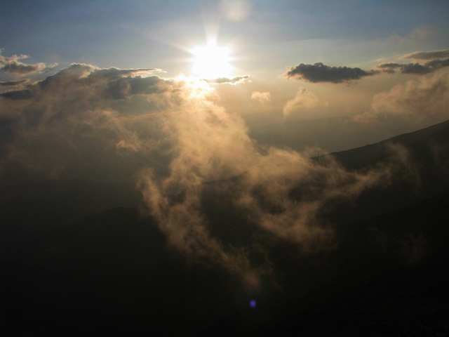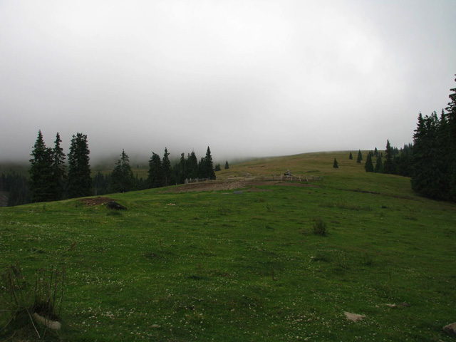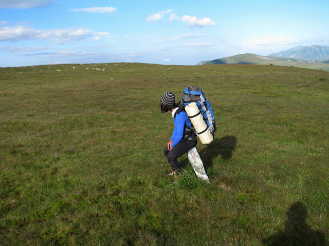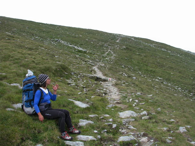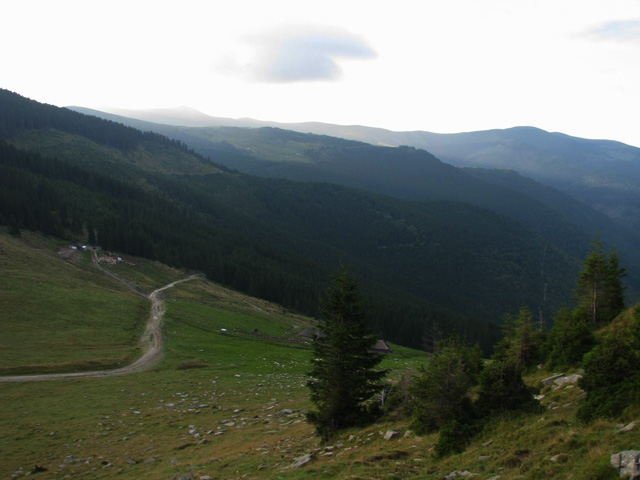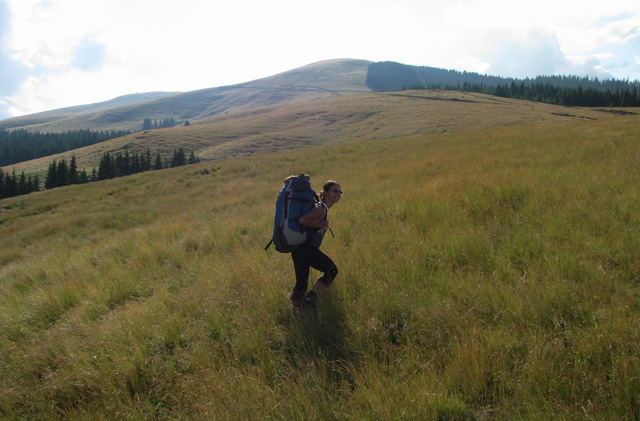 In stana din Curmatura Oltetului ne trezim la ora 5:00 dimineata, inainte de a se scula ciobanii. Tabieturile de dimineata: ceaiul / cafeaua (la primus), mancare, apoi rucksacii de strans. Bacita ne ofera (gratis) doua bucati mari de urda si branza plus cateva rosii. Cred ca erau vreo 10 kg numai de branza! I-am explicat ca noi ducem totul cu spatele si avem mult de mers, asa ca am taiat o bucatica de urda si una de branza si am luat vreo 4 rosii. Oricum, ne incarcasem suplimentar cu vreo 4 kg, ceea ce conteaza… Ne-am luat ramas bun de la acesti ospitalieri ciobani din Nordul Olteniei, pornind in traseu.