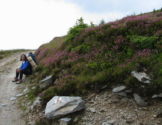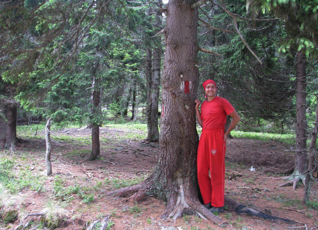 Asadar, debarcam in Malaia, iar la indicatiile unor oameni sfatosi ai locului, incepem sa urcam pe poteca spre Stanele Zmeuretu.  Urcusul e destul de abrupt, in serpentine si destul de obositor, mai ales ca noi ne-am reumplut rucksacii cu mancare si cele necesare continuarii Traversarii Meridionalilor. Peisajul e cuprinzator, vedem Muntii Latoritei, Lotrului, totul de un verde crud, peste care se inalta albastrul cerului. Continuam sa urcam, prin padure, pe alocuri trebuind sa trecem peste arbori culcati la pamant. Dupa cateva ore, padurea se mai rareste, iar linistea e tulburata de latratul unor caini. E clar, stana e pe-aproape! Iesim in gol, in vecinatatea stanei Zmeuretu. Bacita (cu baiatul ei) e de treaba, are chef de vorba. La stana mai au ajuns niste baieti ce au cumparat branza; cand le-am spus de-unde venim si incotro mergem, i-am pus pe ganduri… Bacita ne-a asigurat ca nu vom avea probleme cu cainii si ca oricum ne vom intalni cu tatal ei cu oile. In culme se asternuse o oarece ceata. Am luat-o la picior, fiindca aveam de mers. Mergand prin padure, iesim in Curmatura Zanoaga, apoi in Curmatura Rodeanu. Vizibilitatea redevenise buna! Pe parcurs ne-am intalnit cu tatal bacitei, cu care am schimbat cateva vorbe. Poteca e larga in aceasta zona a Culmii Principale a Capatanii. Pe un copac am gasit un marcaj banda rosie, nestiind ca era cam singular… Continuam sa mergem indreptandu-ne spre Curmatura Valeanu. In fata se desfasoara varfurile masivului Capatanii.  Orele se scurg si incepem sa ne gandim unde vom inopta, precum haiducii de odinioara. In stanga, la liziera padurii se vad mai multe stane. Coboram la una dintre acestea, in interiorul careia instalam cortul. Gasim si apa in apropiere, mancam, apoi, incet-incet, mantia noptii ne invaluie intr-un somn odihnitor.