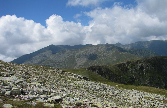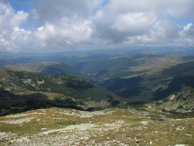 Carpatii Meridionali, cei mai inalti munti din Romania. Toate varfurile de 2500m se gasesc in acest lant muntos. Varfuri stancoase, creste semete, lacuri glaciare, intinderi de pasuni, paduri… Privesc harta tarii: pe Valea Prahovei, la poalele Bucegilor este Sinaia –perla Carpatilor, statiune de munte traditionala a tuturor romanilor ; apoi, catre vest, la baza Muntilor Cernei sunt Baile Herculane –renumita statiune cu ale sale ape vindecatoare ce erau cunoscute inca de pe vremea romanilor. Din preajma oraselor respective se desfasoara o suita lunga de creste si culmi, lantul Carpatilor Meridionali.
