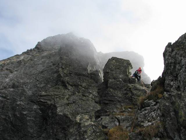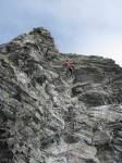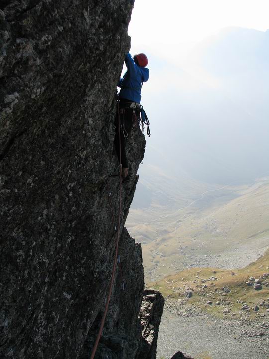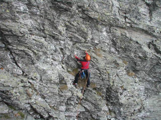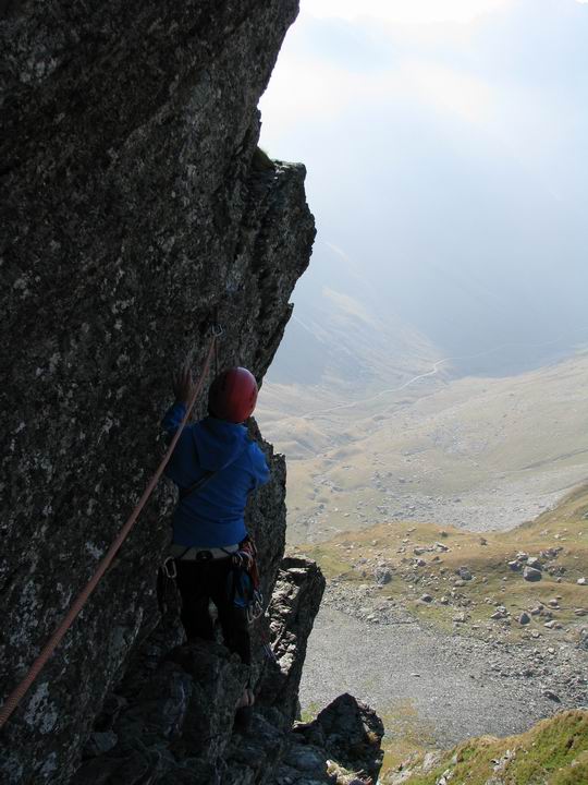 Dupa ce vine si Andreea, pornesc din nou, initial intr-o traversare aeriana spre dreapta, apoi direct in sus pe o muchie.
