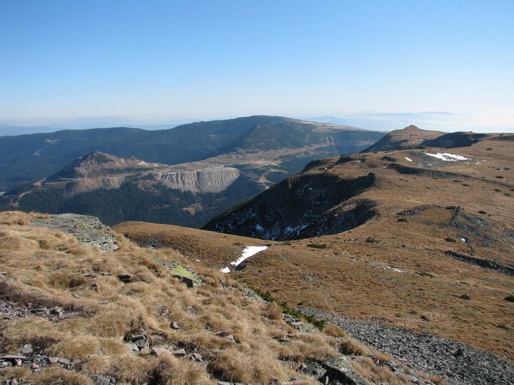 Continuam sa mergem pe culme, coborand de pe Vf Pietrosul Calimanilor.