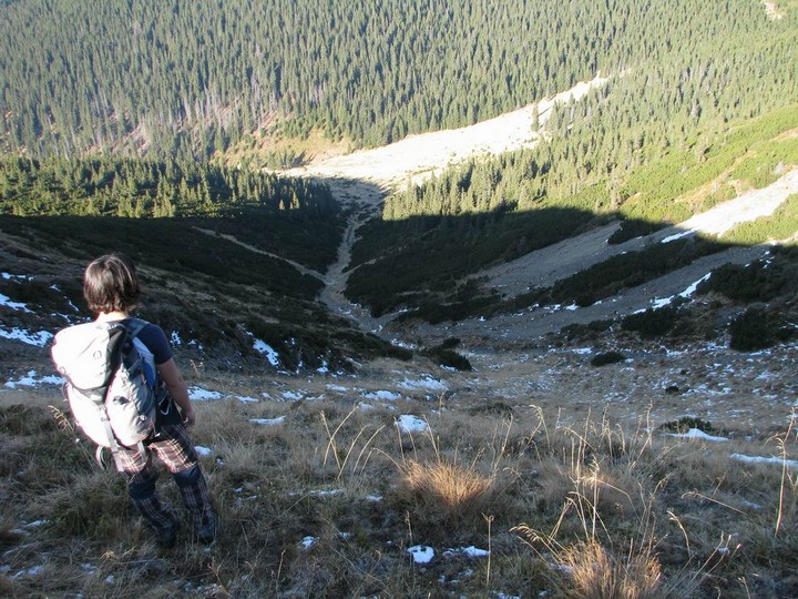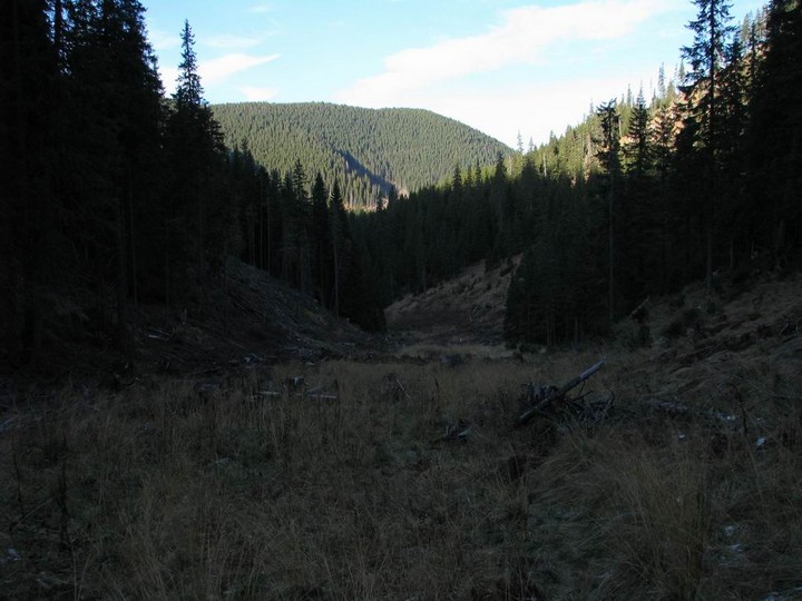 De aici coboram la vale, in zona de obarsie a paraului Tarnita.