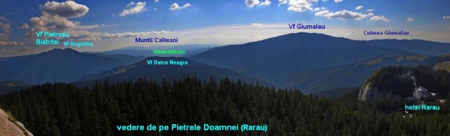 O vedere panoramica de pe Pietrele Doamnei din Rarau , in directia Vaii Bistritei