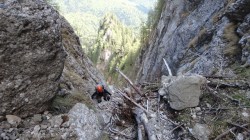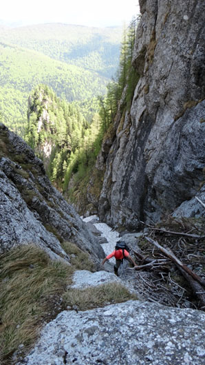 coborand in rapel din Strunga Coltilor pe firul Vaii Galbinele secundar.
