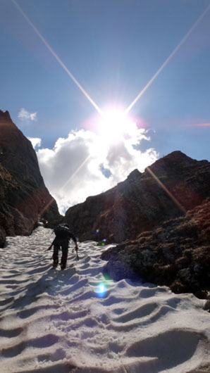 Apoi, dupa ce ne echipam cu coltarii si pioletul, o luam in sus pe Valea Coltilor.