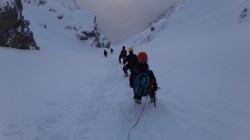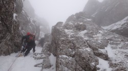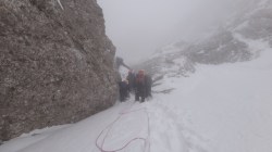 Crucea Eroilor intre neguri, echipa noastra urcand finalul Crestei Picaturii