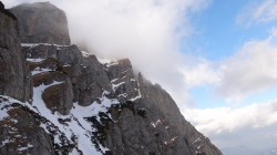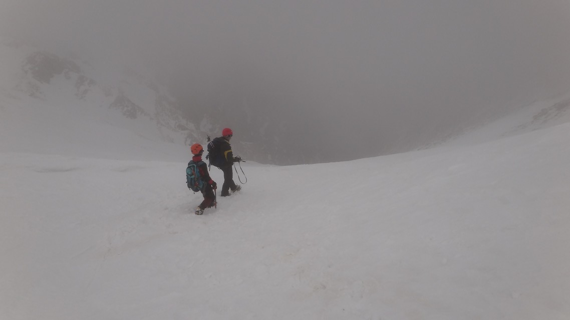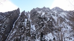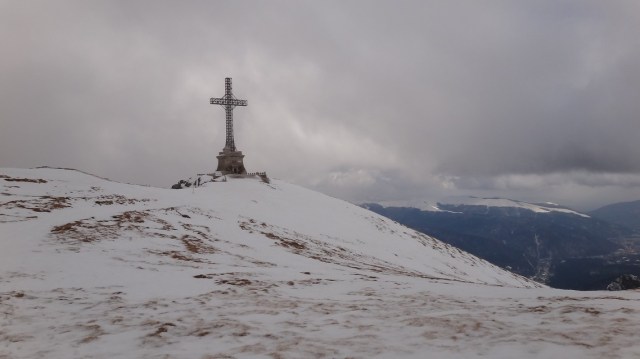 Ajungand la Crucea Eroilor, dupa ce urcasem prin Hornurile Vaii Seci a Caraimanului in conditii de iarna