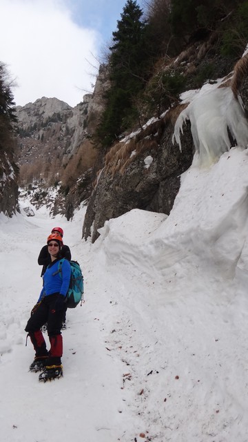 Mici cascade inghetate, e ger ; urcam