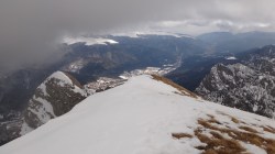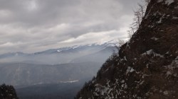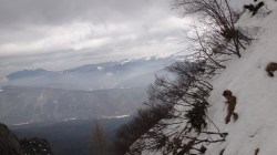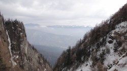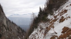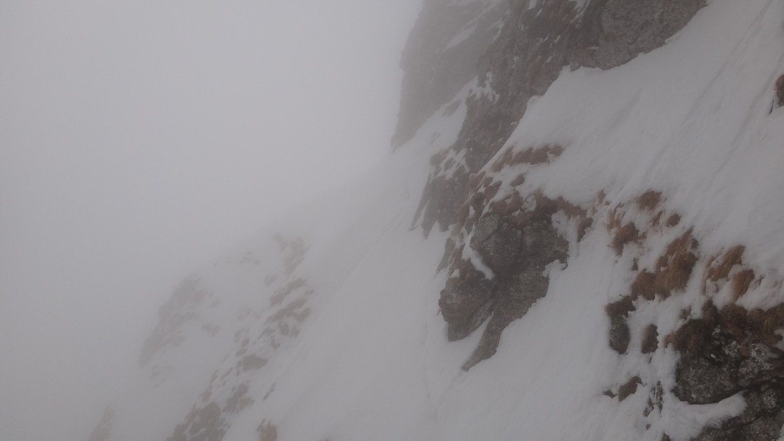Continuam traseul; se vede prin neguri Saritoarea Mare