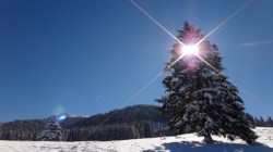Prin padurea de argint, razele Soarelui razbat intr-o lumina feerica ! Noi continuam sa urcam, discutand, dar si admirand peisajul hivernal.