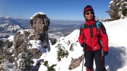 Un copac isi etaleaza fructele rosii surprinse de zapada. Continuam sa urcam, asteptand cu nerabdare sa iesim din zona de padure. Dupa un urcus mai abrupt, trecem pe la baza unor stanci cu forme interesante. Una seamana cu un leu.