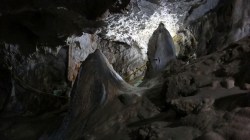 In pestera exista tot felul de formatiuni carstice tipice, stalactite si stalagmite.