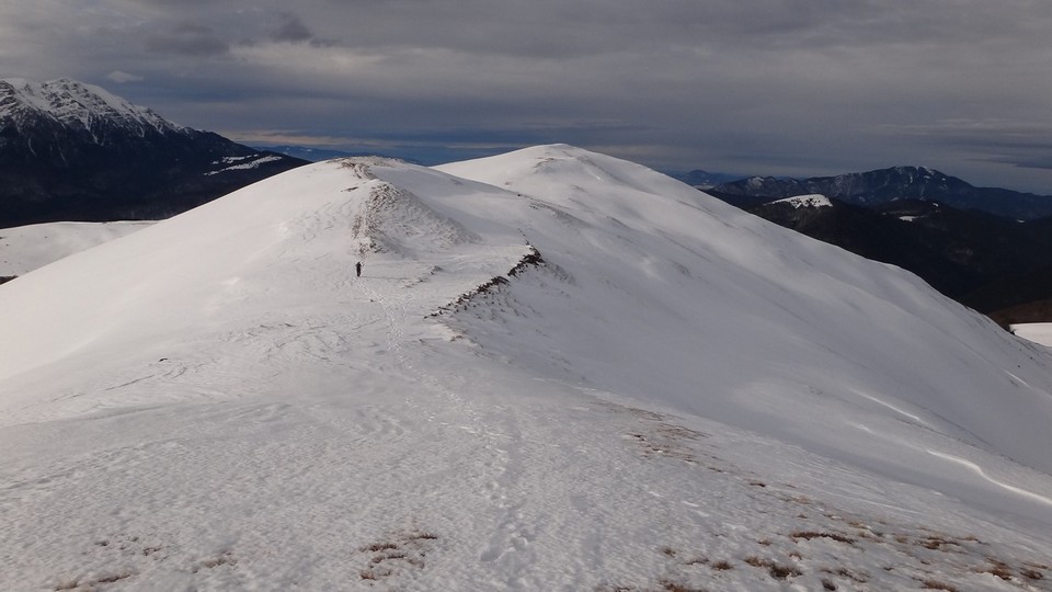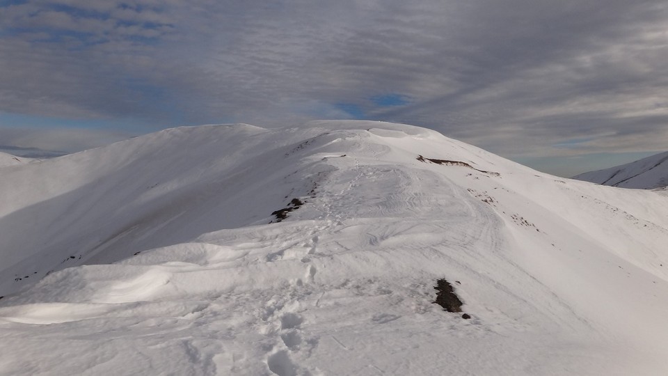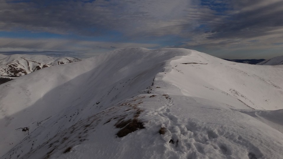 Intrucat se apropia acel front intunecat, nu am mai zabovit pe varf. Asadar am continuat traseul coborand pe o culme adiacenta.