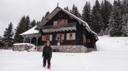 Iesim din cabana, angajandu-ne in urcusul spre piciorul Romanescului. Desfacem urme prin zapada mare.