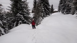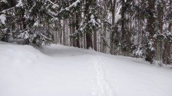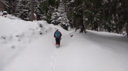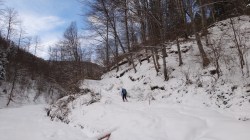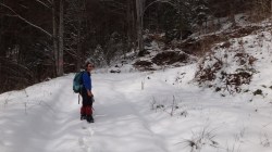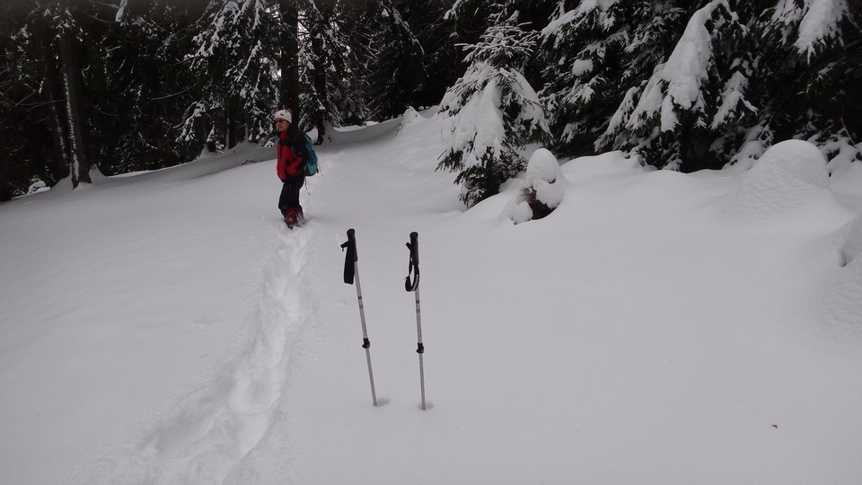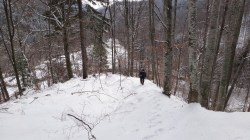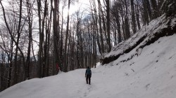 Apoi pornim in urcus spre Cabana Leaota. Incepem sa desfacem urme prin zapada proaspata.