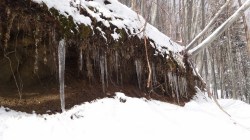 Tot discutand cu Andreea, urcam constant, astfel incat ajungem in preajma cabanei. WC-urile (cu desene) sunt demolate in padure, iar izvorul de-abia siruie. Bine ca totusi curge! Urcam la Cabana Leaota.