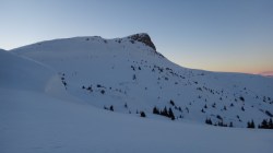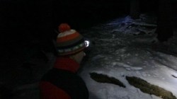 Ultima reduta din suita nenumaratelor varfuri ale Leaotei.Andreea vine si ea cu rucsacul in spate. Fara a mai sta pe ganduri, incepem sa urcam si pe acest ultim varf. In apropierea punctului somital ne angajam spre stanga. Zapada este mare si se lasa intunericul. Ne aprindem lanternele frontale. Incepem sa coboram pe piciorul Romanescu de langa Marginea Domneasca. De cand asteptam aceasta coborare. Nametii sunt din belsug, dar avem elan. Apar iar urme multe de lupi. Recente. Urmeaza un pasaj de urcare ce ne conduce intr-o mica poenita. In departari se vad luminile localitatilor dambovitene. Dinspre padure se aud trosnete. Probabil de la animale. O coborare prin zapada destul de mare ne scoate langa Stana de Piatra.