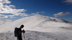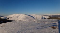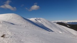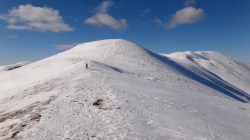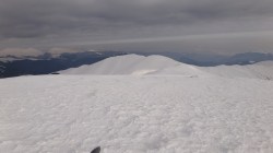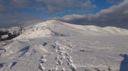 Urcam pe Secarea Mica. Si lupul a urcat tot pe-acolo. Mentinem culmea in urcare si nu dupa mult timp suntem pe Vf Secarea Mica. Parca-parca ne-am mai miscat ceva! Vf Leaota se vede mai aproape.