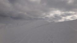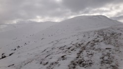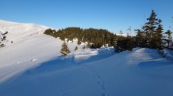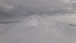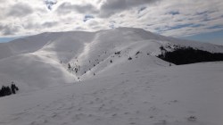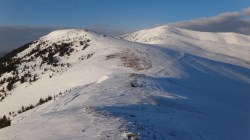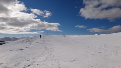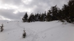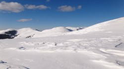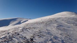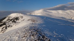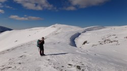Si dai si urca! Si desfacem urme prin zapada! E ce trebuie! Dupa ce ne-a iesit ceva din “gaz”, ajungem pe Piscul Lacului. Privesc in fata: parca ne-am mai apropiat! De capat? Nuuu! De Curmatura Fiarelor.