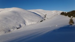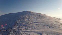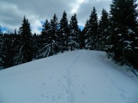 Coborarea de pe Duda este cam abrupta si zapada e inghetata pe alocuri. Mergem cu atentie sa nu alunecam. Ajungem in plin elan intr-o sa. Elanul ne este redus brusc de un nou urcus sustinut, pe Vf Piscul Lacului.
