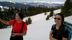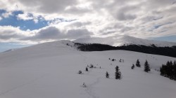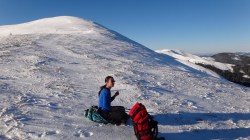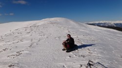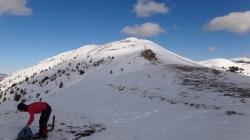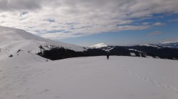 Urcam si pe acesta, ca deja suntem obisnuiti cu urcusul! Mai mergem un pic pe culme si mai urcam inca un varf… Oare cate-or mai fi ? Andreea e in fata, merge bine. Eu,in spate, cu filosofiile. Asezonate cu mers prin zapada.