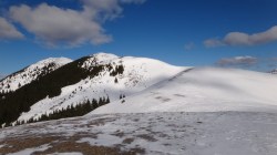 Incepem sa urcam Dudele. Incet-incet castigam altitudine. Dar si eforturile-s pe masura! Mai “bagam” prin nameti, cu Andreea pe post de locomotiva. Eu vin in urma, ajungand insa la turatia nominala. Mentinem culmea matematic. Noua ne place matematica! Se mai domoleste panta, apoi iar urmeaza un urcus abrupt. Incet dar sustinut ajungem pe Vf Duda Mare secundar.
