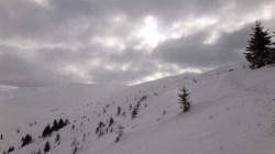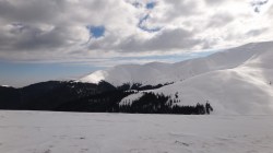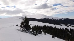 Suntem in zona Muntelui Mitarca. Continuam sa mergem prin zapada.