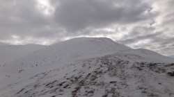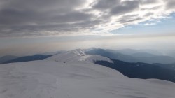 Dupa ore intregi de mers prin zapezi,pe creste si culmi, vedem in fata noastra impunatorul Varf Leaota.