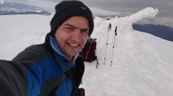 Nu mai e mult pana la varf. S-au adunat neguri, bate vantul – vreme caracteristica Varfului Leaota. Ma uit la Andreea, vine si ea. Hai, mai e un pic! Cativa pasi, alti cativa pasi si iata, Varful Leaota! Am ajuns!