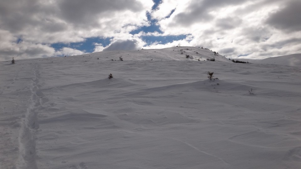 Si dai si urca! Si desfacem urme prin zapada! E ce trebuie! Dupa ce ne-a iesit ceva din “gaz”, ajungem pe Piscul Lacului. Privesc in fata: parca ne-am mai apropiat! De capat? Nuuu! De Curmatura Fiarelor.