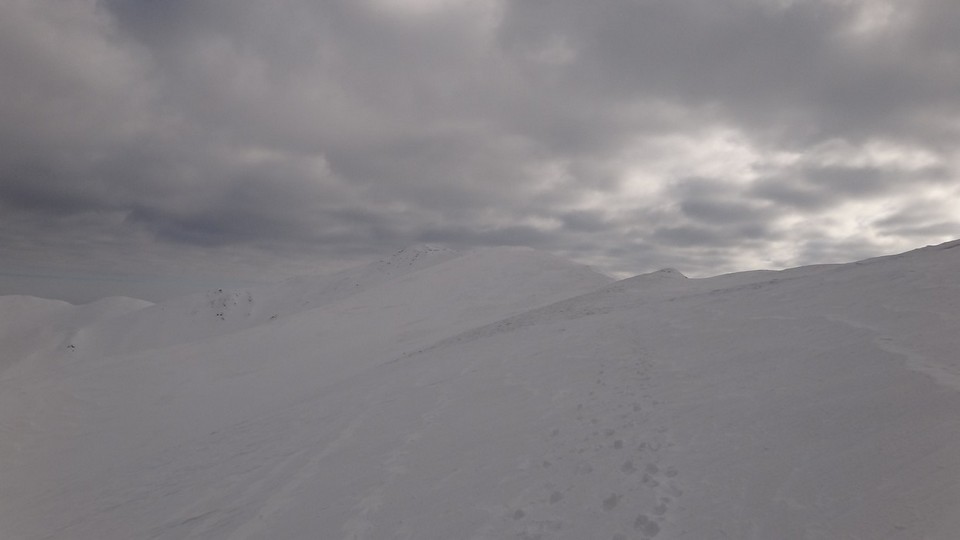 Urcam pe Secarea Mica. Si lupul a urcat tot pe-acolo. Mentinem culmea in urcare si nu dupa mult timp suntem pe Vf Secarea Mica. Parca-parca ne-am mai miscat ceva! Vf Leaota se vede mai aproape.