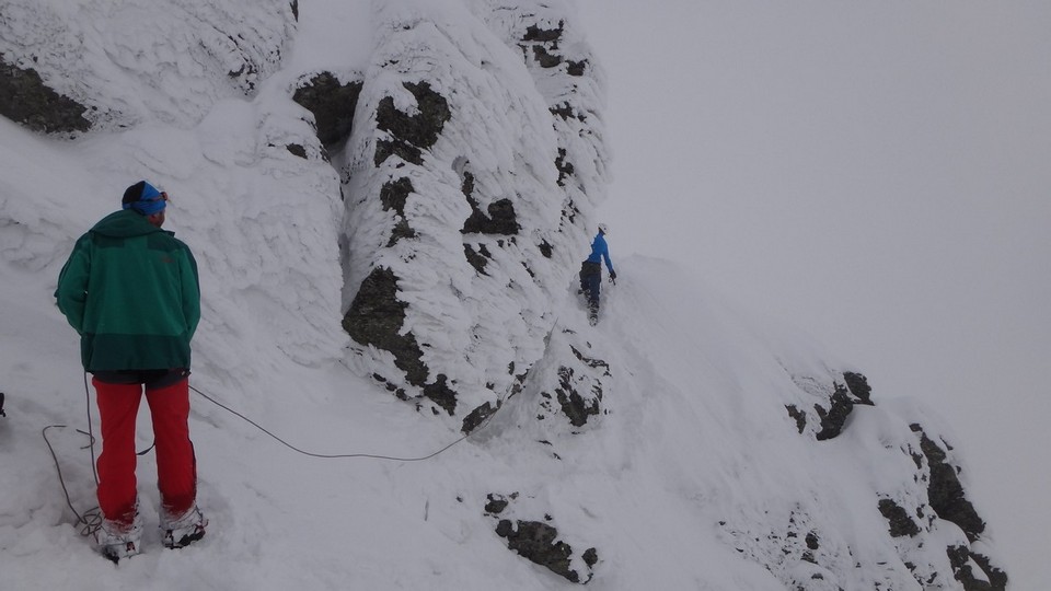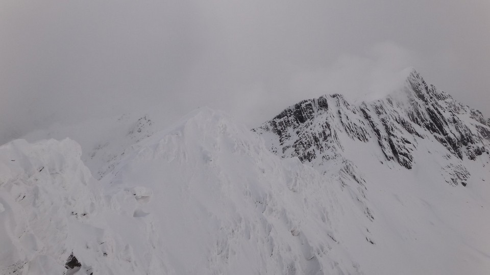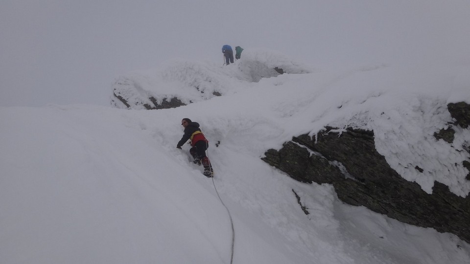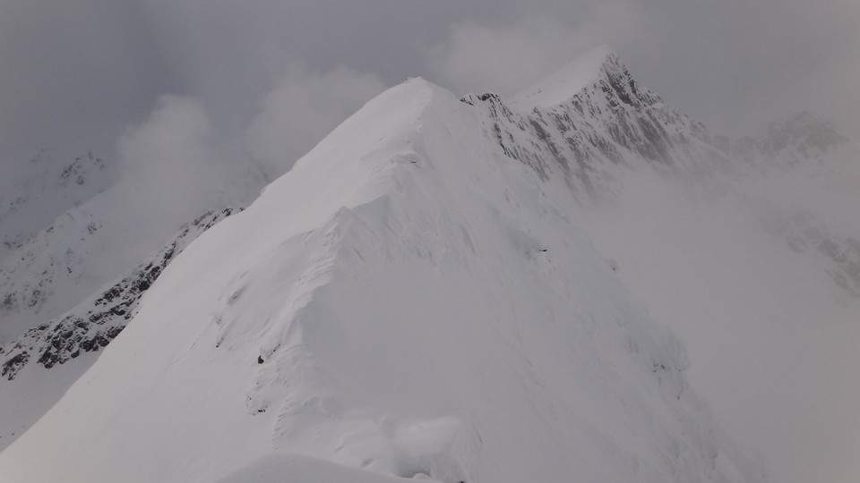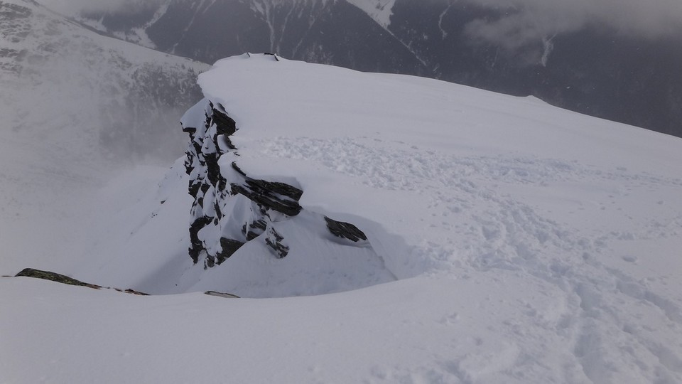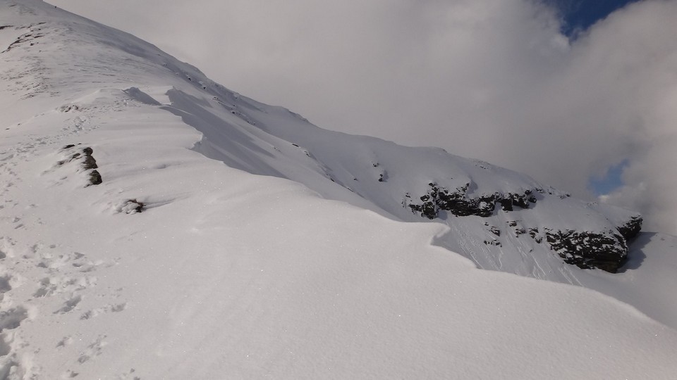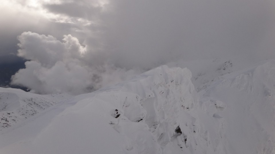 Cornisele sunt impresionante si zapada e instabila pe creste.