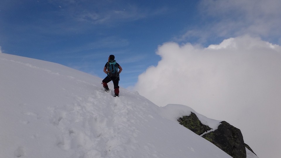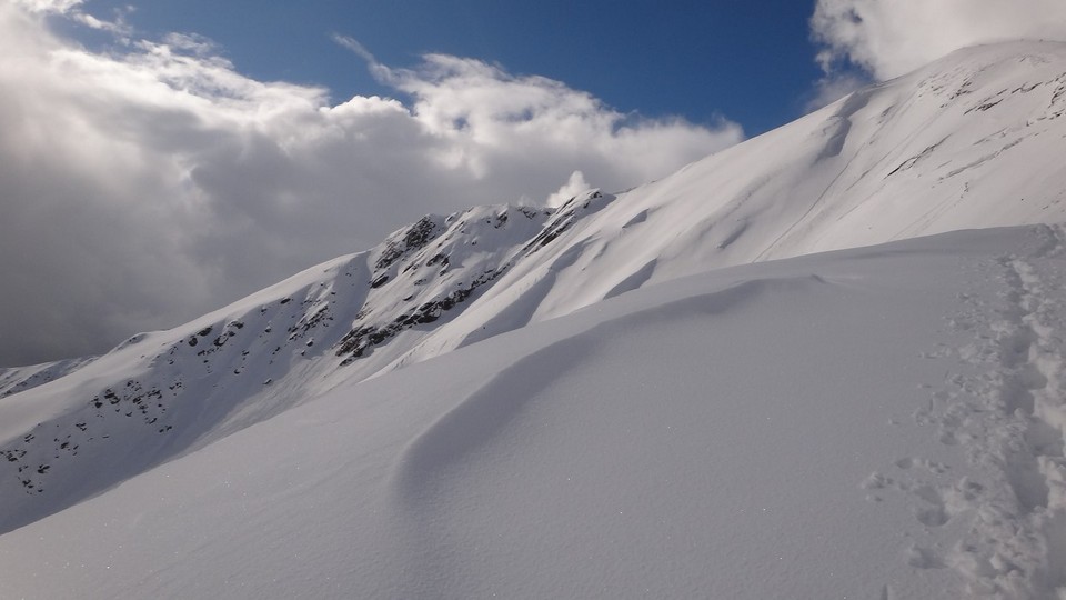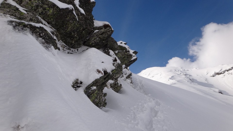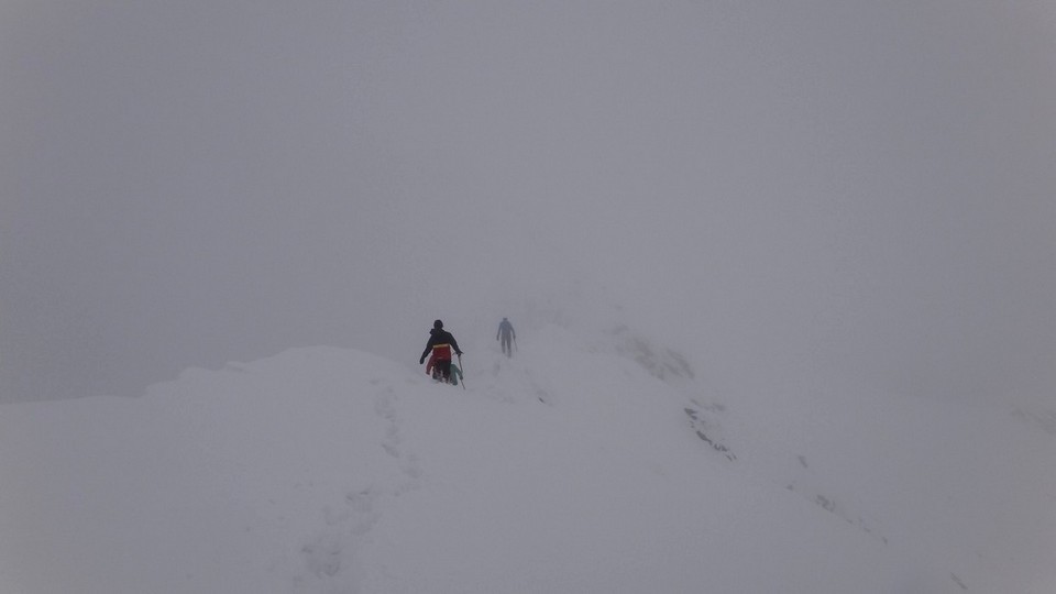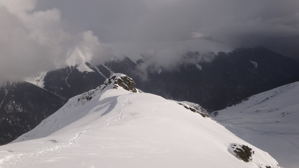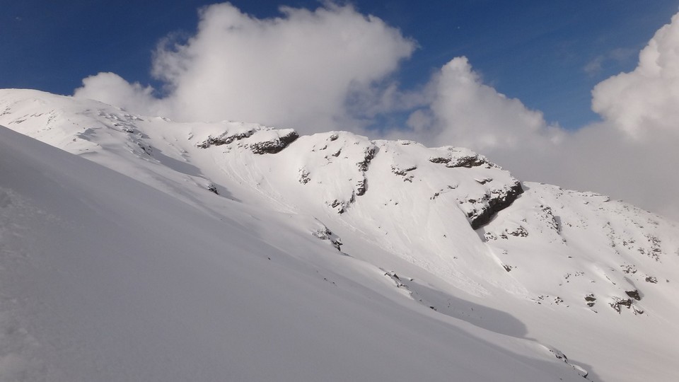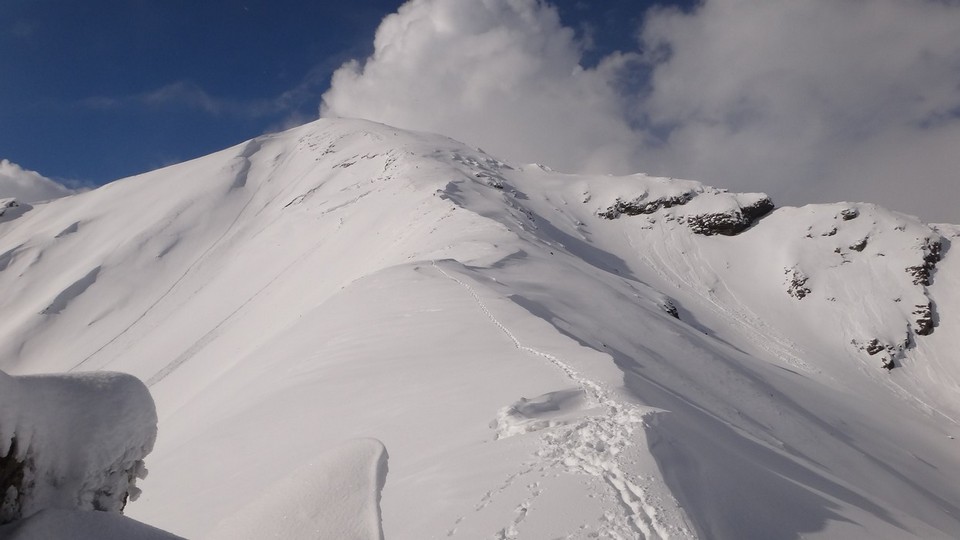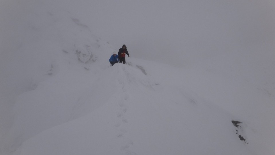 Cornisele sunt impresionante si zapada e instabila pe creste.