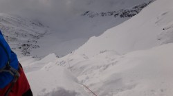 Zapada mare imi da oarece emotii. Pe versantii din apropiere se vad doua avalanse…