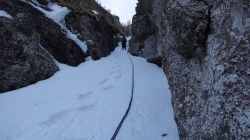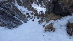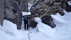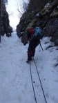 Dupa ce am urcat pe Albisoara Strungii cu zapada , am ales varianta coborarii prin Albisoara Turnurilor (ce presupune anumite manevre de coarda).