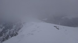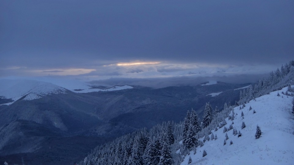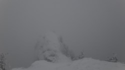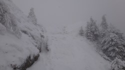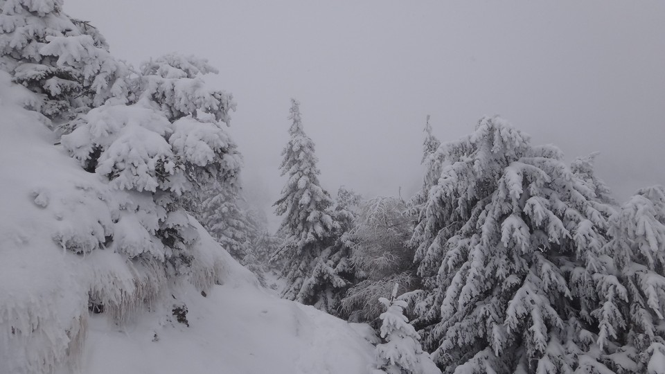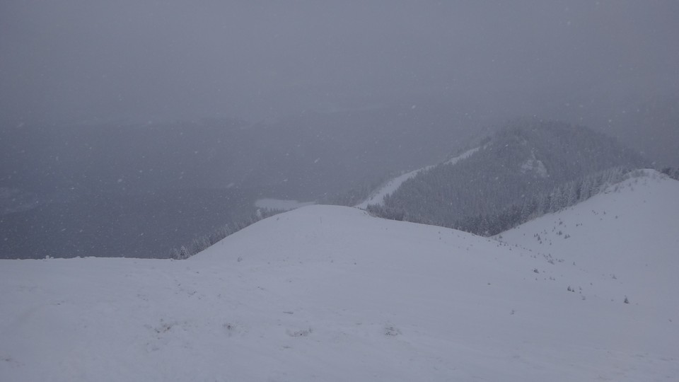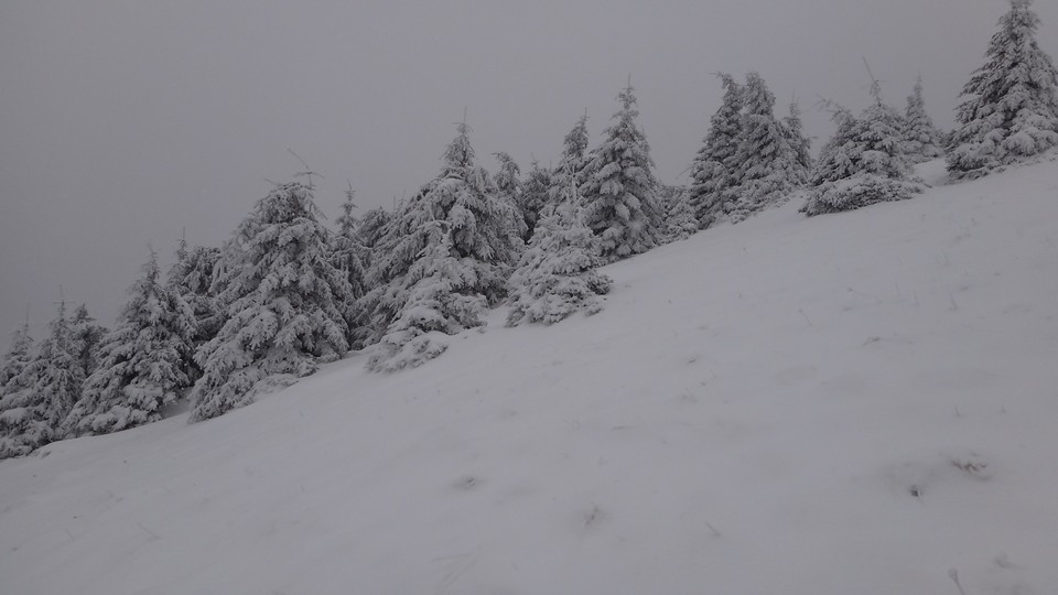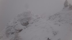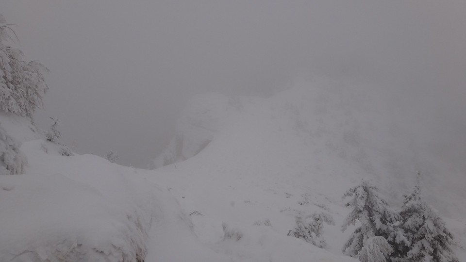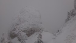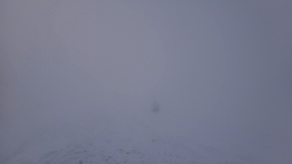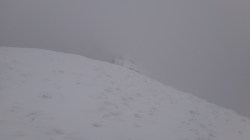 Creasta e tot in neguri, ninsoare si vant. Insa eu am reusit, sunt in preajma cabanei !