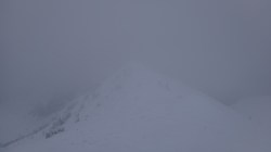 Negura se accentueaza si vantul se inteteste! Cunosc senzatia, am mai trecut prin aceasta stare si altadata. Ma deplasez cu atentia sporita la maxim, urmand inflexiunea Crestei Principale. Zona e larga, pericolul de ratacire este ridicat in aceasta zona. Insa eu cunosc bine traseul si am incredere!