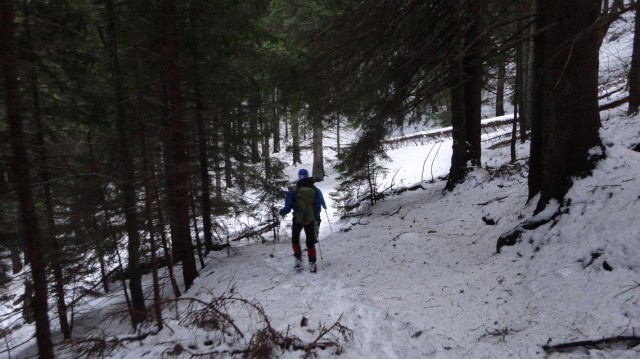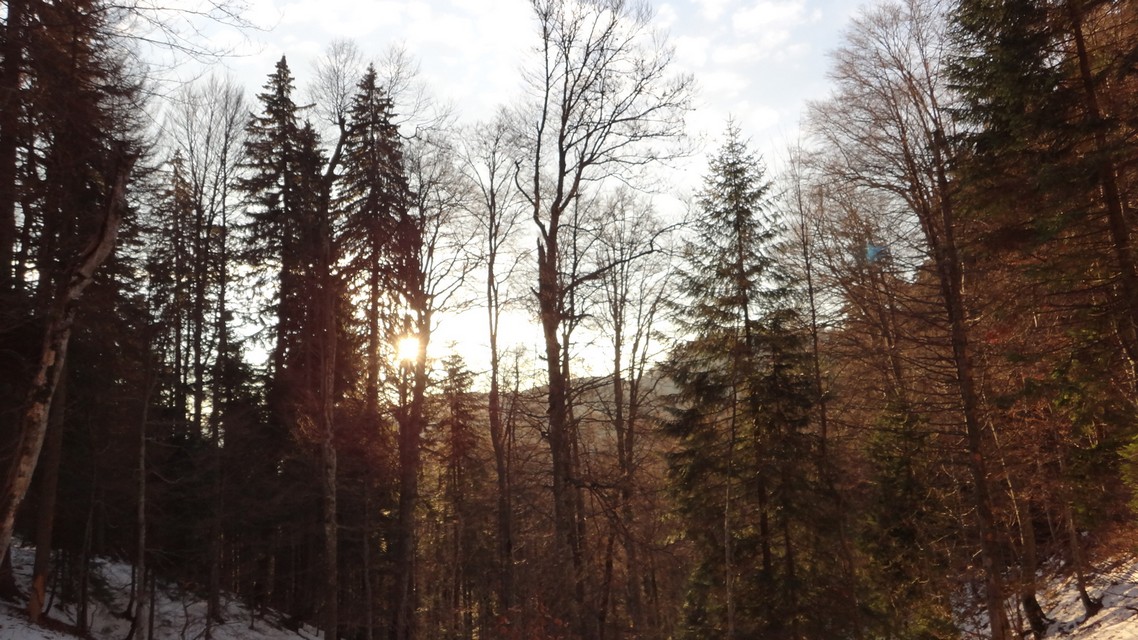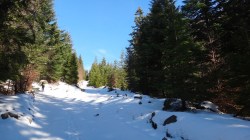 Insa dificultatile de orientare nu s-au terminat! Odata ajunsi la nivelul padurii, zapada este mare si nu gasim o continuare clara a traseului. Dar cautam!