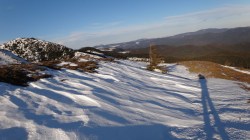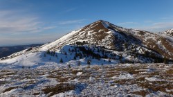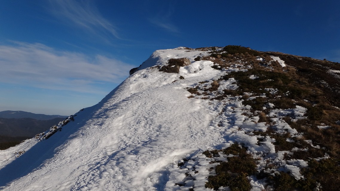 Privelistea in jur este cuprinzatoare: Ciucas, Vrancei, Siriu. Video de pe Varful Penteleu Desi nu are o altitudine mare, forma varfului este deosebita: o piramida cu trei laturi. Stam un pic, fiindca e zi scurta de iarna; ne continuam traseul; nemarcat de acum.