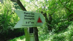 Totodata, deasupra coronamentului, se vad forme diverse de stancarii, inalte si zvelete, placute privirii. Fac parte din ansamblul de stanci limitrofe Cheilor Cetii. Apa este limpede, pare a fi buna de baut. Poteca strabate diverse poienite, cu locuri bune de cort. Dar si cu o sumedenie de flori frumoase! Noi ne continuam parcursul, Andreea il duce pe Stefi in carca, iar eu duc un rucsac cu cele necesare pentru toti trei. Dupa o vreme trecem pe langa un indicator turistic ce semnaleaza o intersectie, continuam sa mergem inainte, spre Baile Romane. La scurt timp ajungem la acestea; practic sunt marmite in care cad cascade de apa.