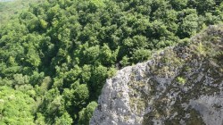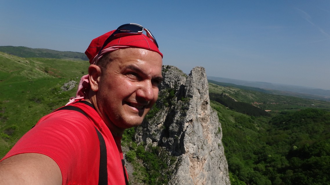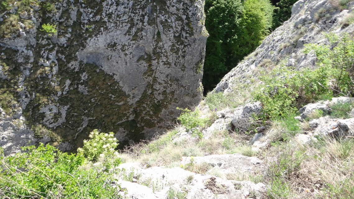 (anterior) In timp ce Andreea cu Stefi se aseaza intr-un loc la umbra, eu incep sa ma catar pe formatiunea stancoasa cea mai inalta (pe la baza careia trec cascadele Cetii), situata in stanga/ versantul stang geografic. Este expus pe alocuri, dar ma misc cu atentie.