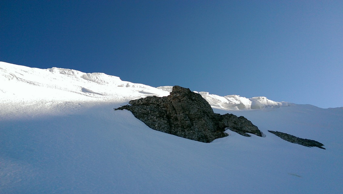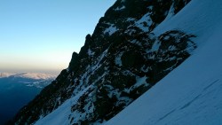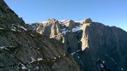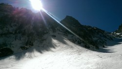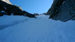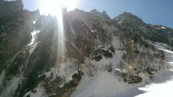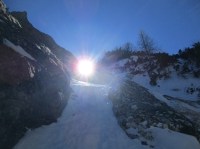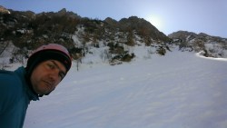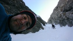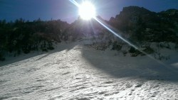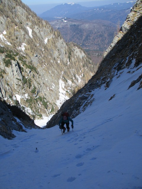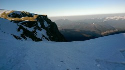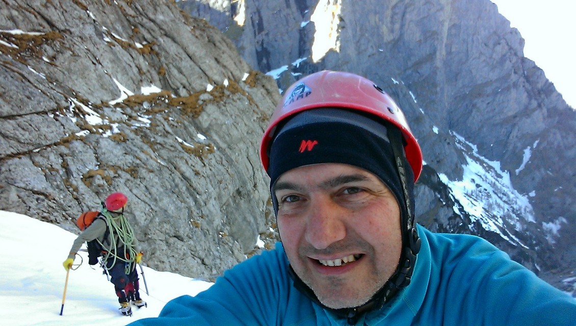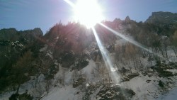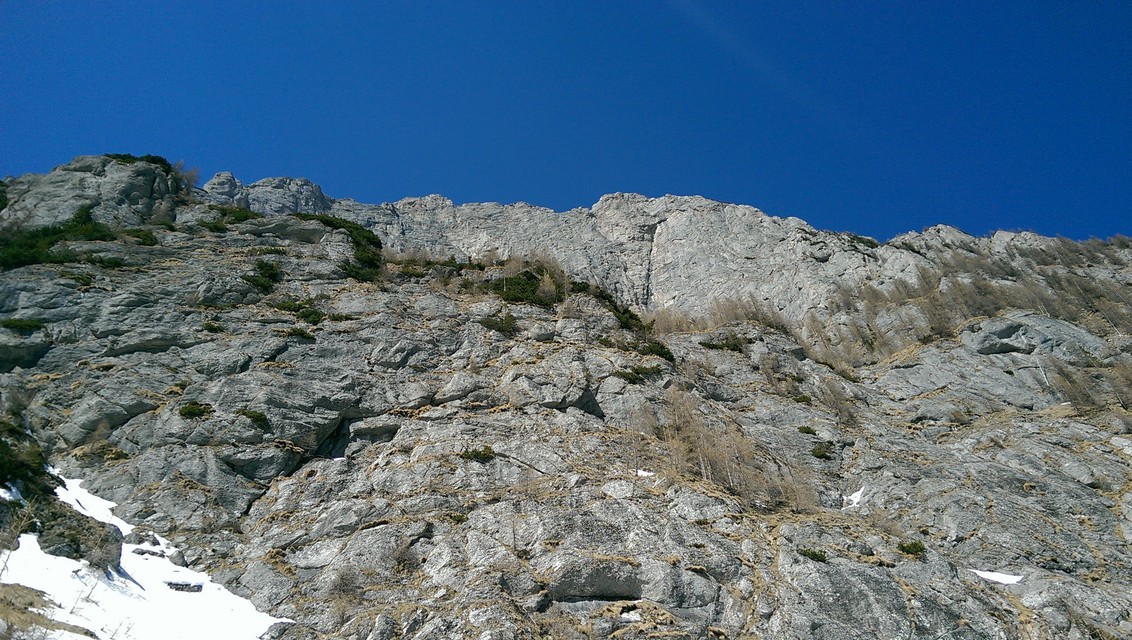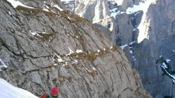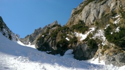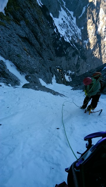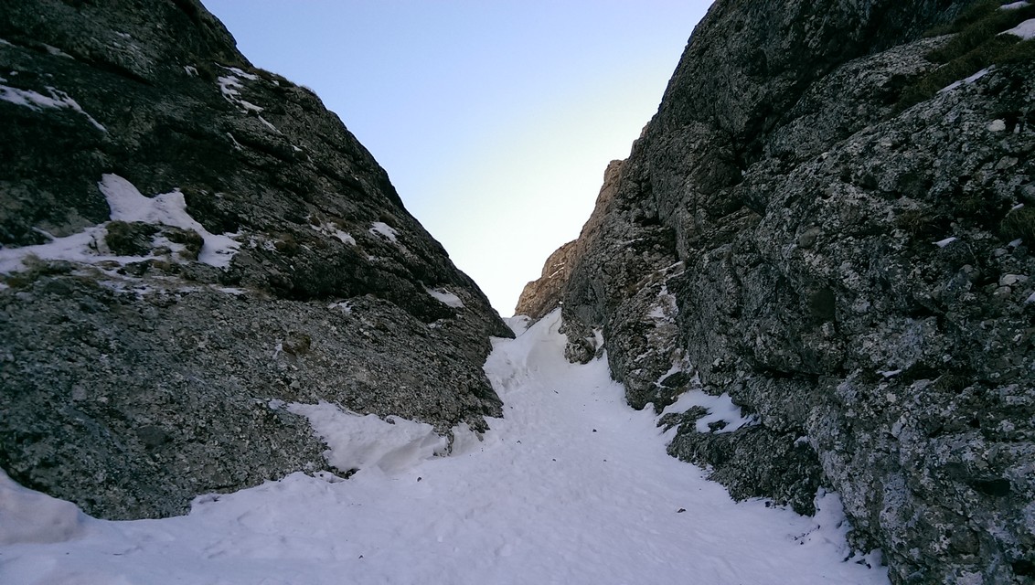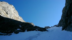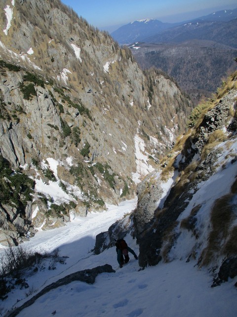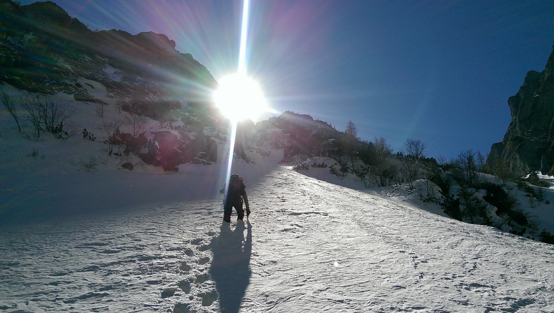 Este o zi frumoasa, Soare, insa traseul se desfasoara pe versant nordic, deci e rece. Urcam, pas cu pas, saritori sub diverse forme: mai cu stanca descoperite partial, mai cu gheata lucioasa, e ce trebuie!